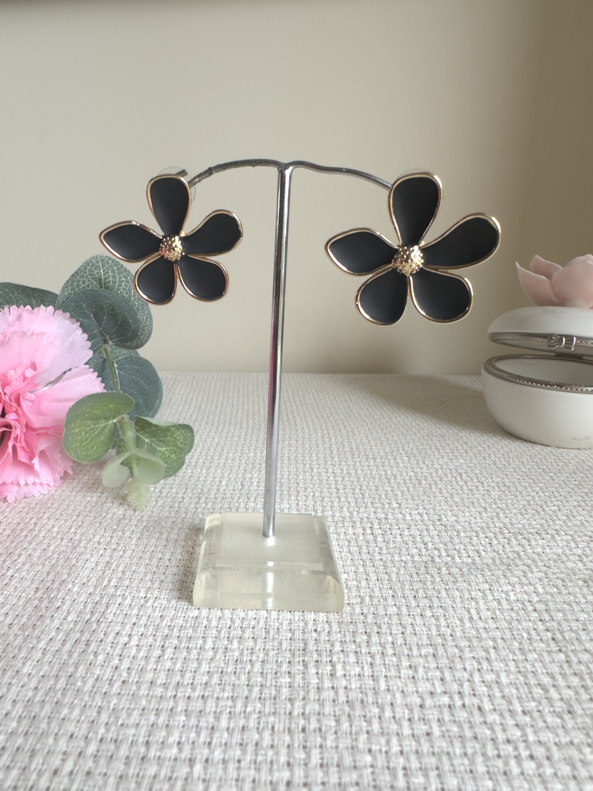 A pair of artificial floral earrings with radiant crystal centers and flowing golden chain tassels, perfect for festive occasions.